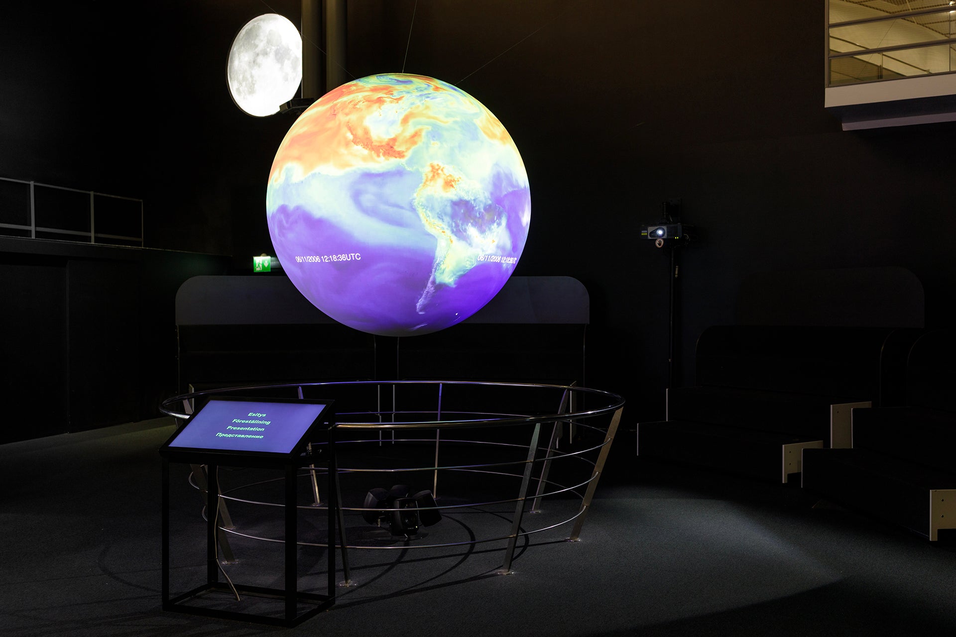 Science on a Sphere is a spherical projection equipment system developed by the US National Oceanic and Atmospheric Administration (NOAA). Information mainly collected by satellites about the oceans, climate, Earth's crust, and space is projected onto the surface of a two-meter diameter sphere. Some of the material is updated daily.